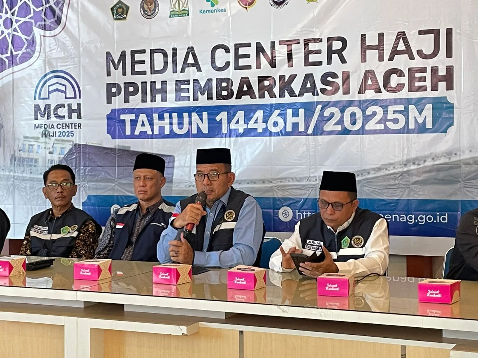 Hal itu disampaikan oleh Ketua Petugas Penyelenggara Ibadah Haji (PPIH) Embarkasi Haji Aceh 1446H/2025M, yang juga Kakanwil Kemenag Aceh Azhari pada konferensi di Media Center Haji PPIH Embarkasi Aceh, Jum’at siang (16/5).