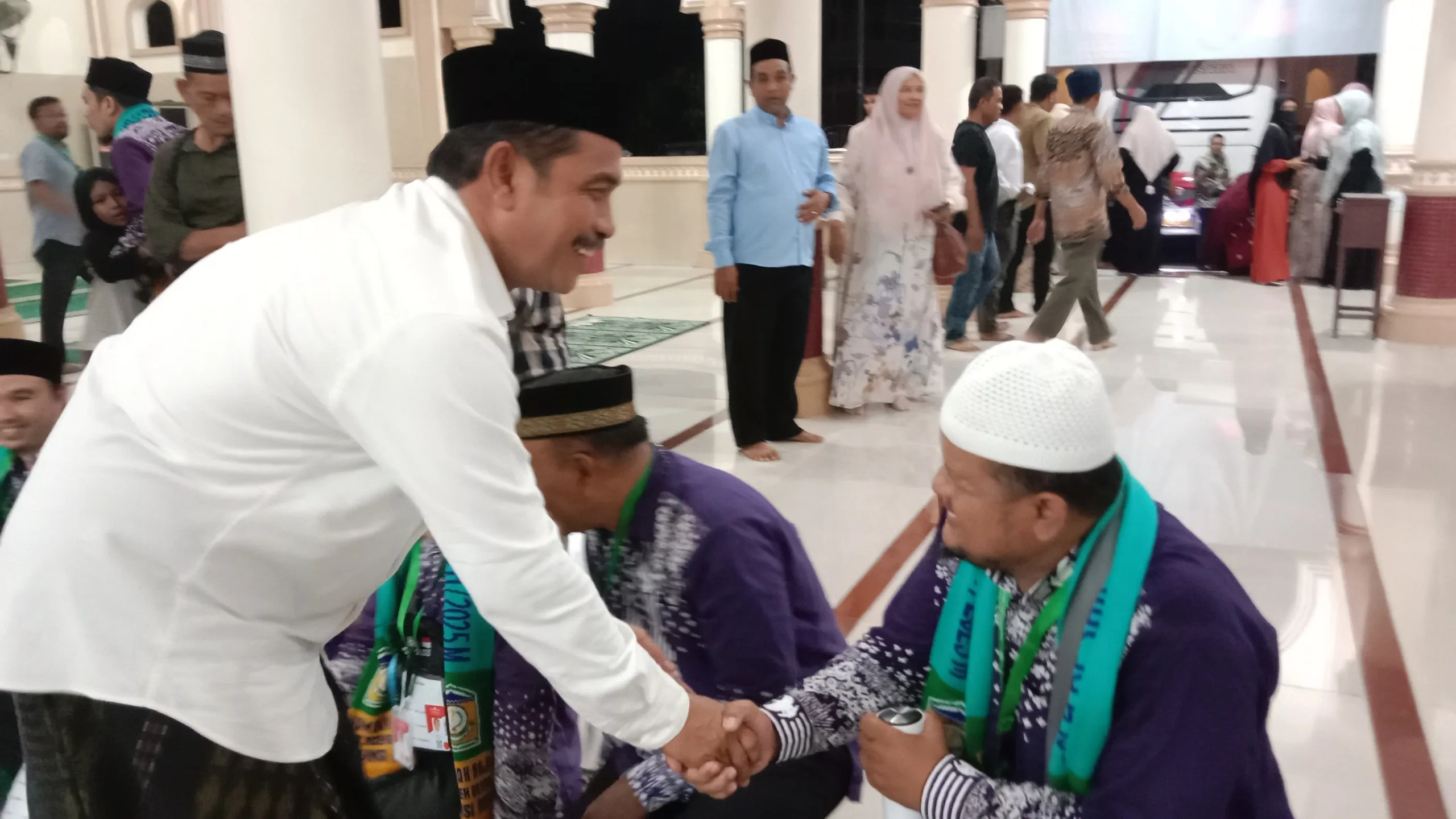 ACEH BESAR – Wakil Bupati Aceh Besar, Syukri A Jalil, melepaskan 42 Jemaah Calon Haji (JCH) di Masjid Besar Baitul Makmur Sibreh, Reuhat Tuha, Kecamatan Sukamakmur, Rabu malam, 21 Mei 2025.