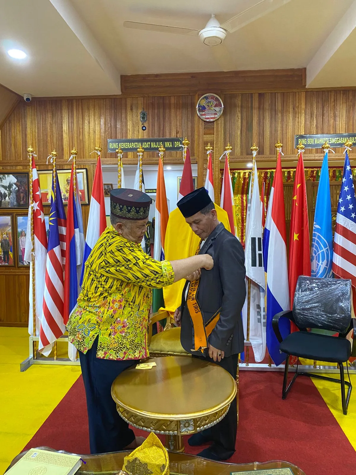 Pada kesempatan tersebut, ia menerima penanugerahan tanda kehormatan langsung dari PYM H. Muhammad Yunus Abdullah Rahmadsyah Al Haj, keturunan Diradja Melayu Air Tiris Riau.
