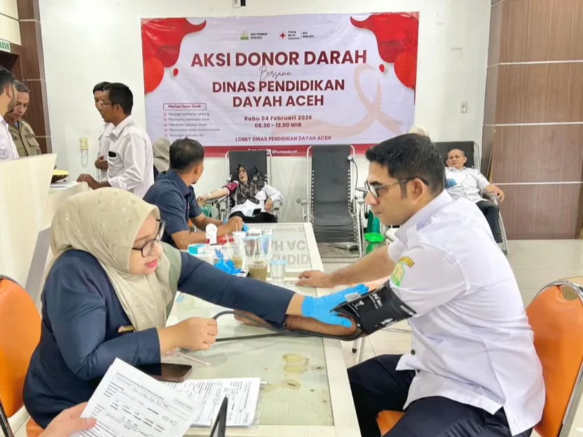 BANDA ACEH — Aksi donor darah ASN Dinas Pendidikan Dayah Aceh yang digelar Rabu, 4 Februari 2026 di Kantor Dinas Pendidikan Dayah Aceh melampaui target yang ditetapkan Pemerintah Aceh.