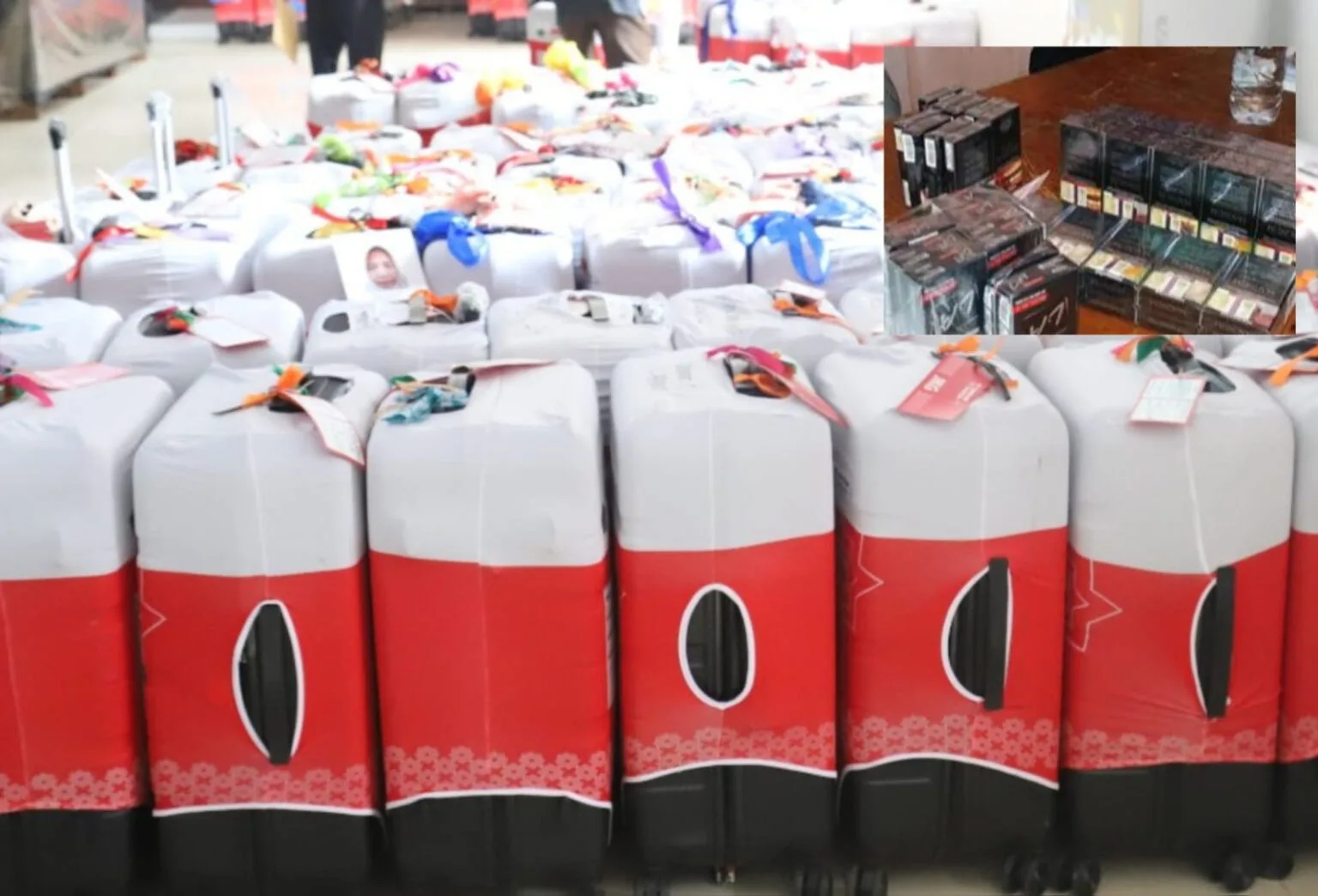 Kepala Daerah Kerja (Daker) Bandara Abdul Basir menjelaskan, dua dari empat koper yang sudah diperiksa, isinya adalah rokok dalam jumlah banyak.