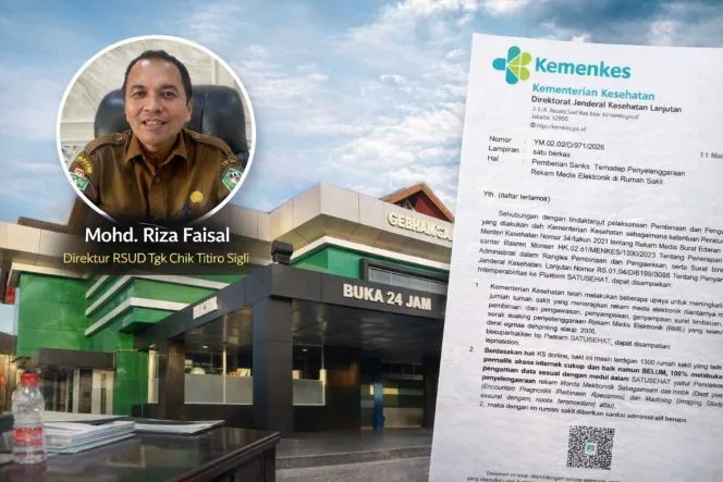 Sigli – Rumah Sakit Umum Daerah (RSUD) Tgk Chik Ditiro (TCD) Sigli menjadi salah satu dari hanya dua rumah sakit di Provinsi Aceh yang tidak terkena rekomendasi sanksi administratif dari Kementerian Kesehatan Republik Indonesia terkait implementasi Rekam Medis Elektronik (RME) terintegrasi dengan platform nasional SATUSEHAT. Capaian tersebut menjadi bukti nyata keseriusan RSUD TCD Sigli dalam mendukung transformasi digital layanan kesehatan nasional.