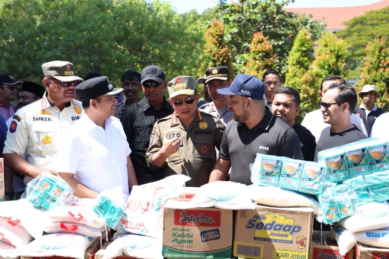 Lhokseumawe – Direktur Utama Bank Aceh, Fadhil Ilyas, menyalurkan bantuan sembako untuk masyarakat terdampak banjir yang mengungsi di kompleks Islamic Center Lhokseumawe, Minggu (30/11/2025).