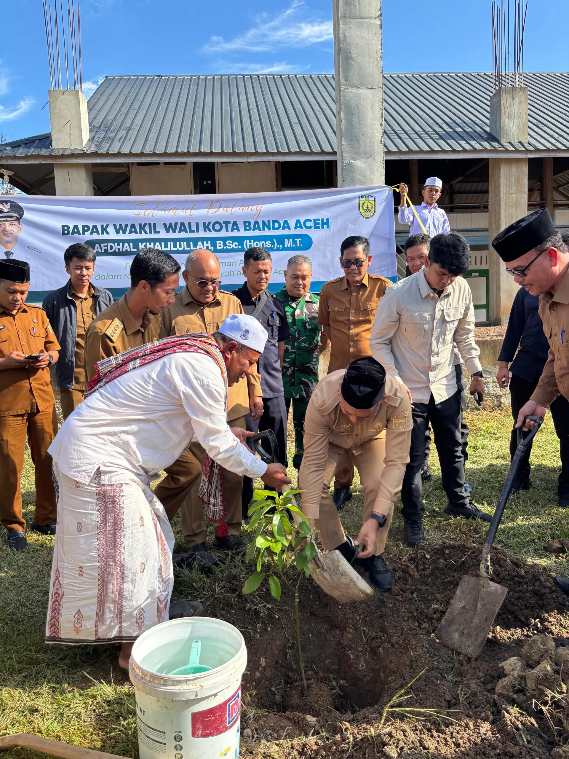 Banda Aceh – Wakil Wali Kota Banda Aceh Afdhal Khalilullah menghadiri kegiatan Gerakan Penghijauan yang digagas Dinas Pendidikan Dayah (Disdik Dayah) Kota Banda Aceh berkolaborasi dengan Dinas Pertanian dan Perkebunan (Distanbun) Aceh di Dayah Mabdaul ’Ulum Al Aziziyah, Gampong Bitai dan Dayah Mishrul Huda Malikussaleh, Gampong Lamjamee, Kecamatan Jaya Baru, Selasa (20/1/2026).