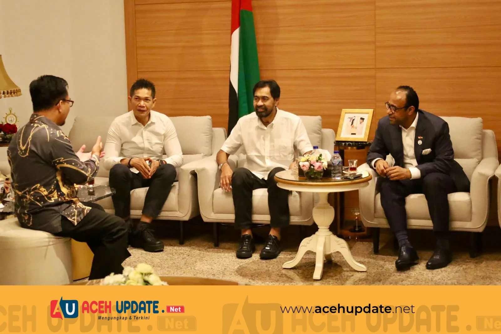 Pertemuan itu berlangsung di kediaman Dubes UEA yang berada di Kuningan Timur, Jakarta Selatan. Mualem didampingi staf khususnya, Dr Suraiya IT, HM Fauzan Kamil Lc MA, ⁠H Teuku Irsyadi, ⁠Iskandarsyah Bakrie Saadudin, dan Vanda Mutia.
