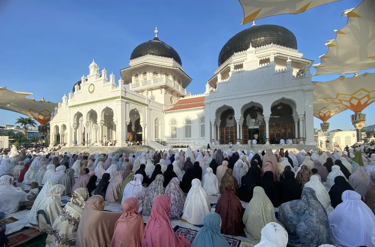 BANDA ACEH – Pelaksanaan salat Idulfitri 1447 Hijriah di Masjid Raya Baiturrahman berlangsung khidmat. Ribuan jamaah memadati area dalam hingga pelataran masjid sejak pagi Sabtu, 21 Maret 2026.