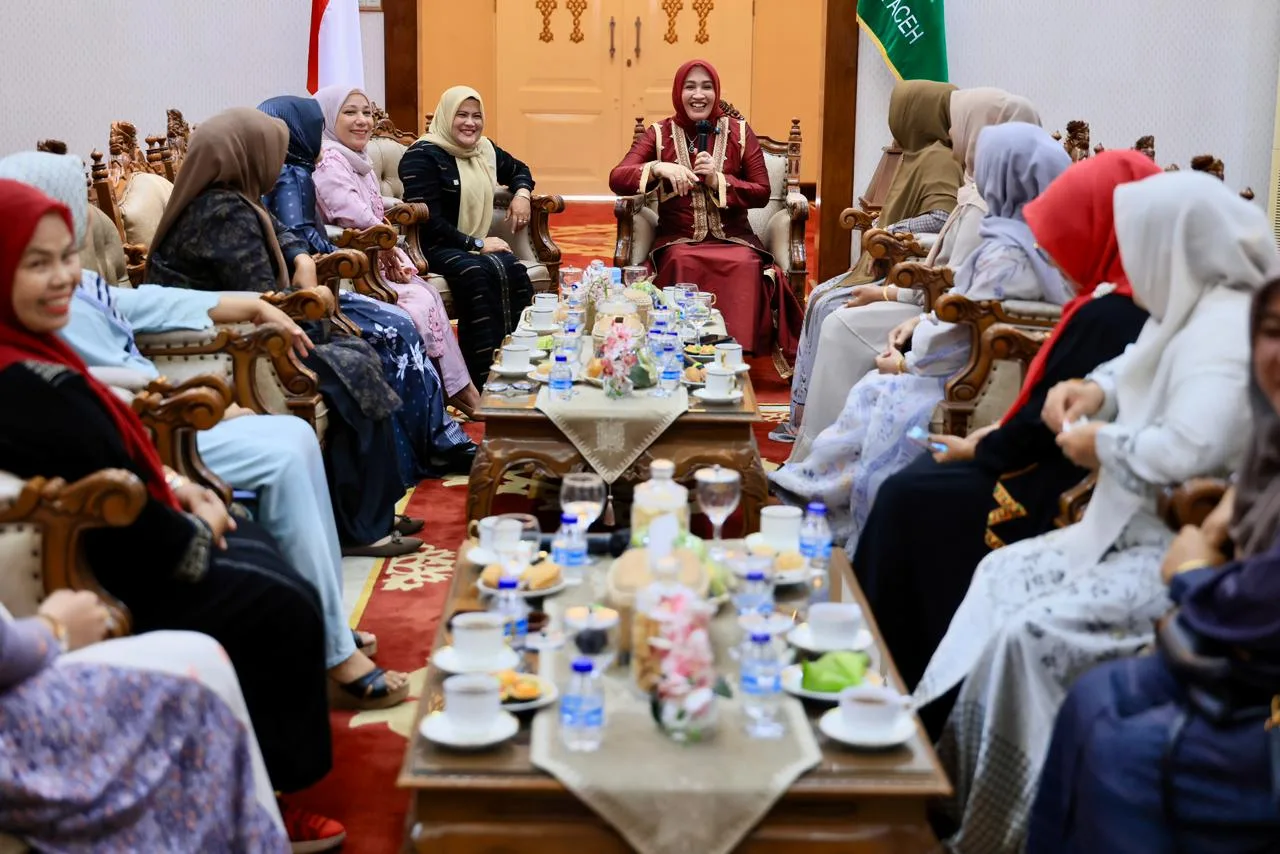 BANDA ACEH–Istri Gubernur Aceh, Marlina Muzakir atau karib disapa Kak Ana menggelar pertemuan dengan seluruh istri mantan panglima wilayah GAM dari seluruh Aceh, di Pendopo Gubernur Aceh, Rabu, (17/9/2025).