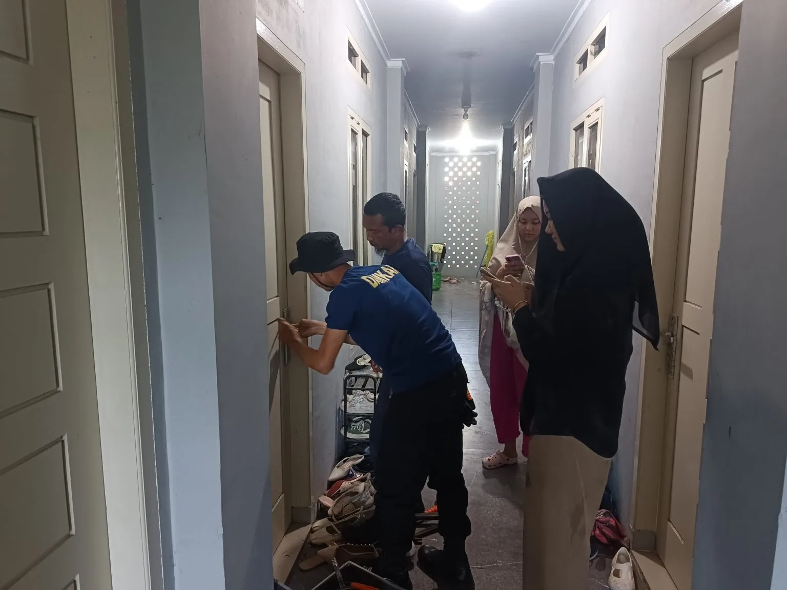 Setibanya di lokasi, petugas segera melakukan asesmen situasi untuk memastikan kondisi penghuni di dalam kamar tetap aman. Setelah memastikan tidak ada tanda-tanda kondisi medis darurat, tim kemudian melakukan pembukaan paksa pada bagian kunci pintu yang mengalami kerusakan.