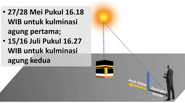 Arsad mengatakan tepat pada 19 dan 20 Muharam 1447 Hijriah, pukul 16.27 WIB atau 17.27 WITA, bayang-bayang benda yang berdiri tegak lurus pada tanggal tersebut akan menunjukkan arah yang berlawanan dari arah kiblat.
