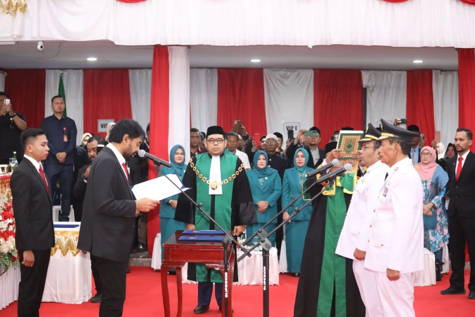 Muzakir Manaf, yang akrab disapa Mualem, memandu langsung pengucapan sumpah jabatan oleh kedua pemimpin baru Kota Sabang.