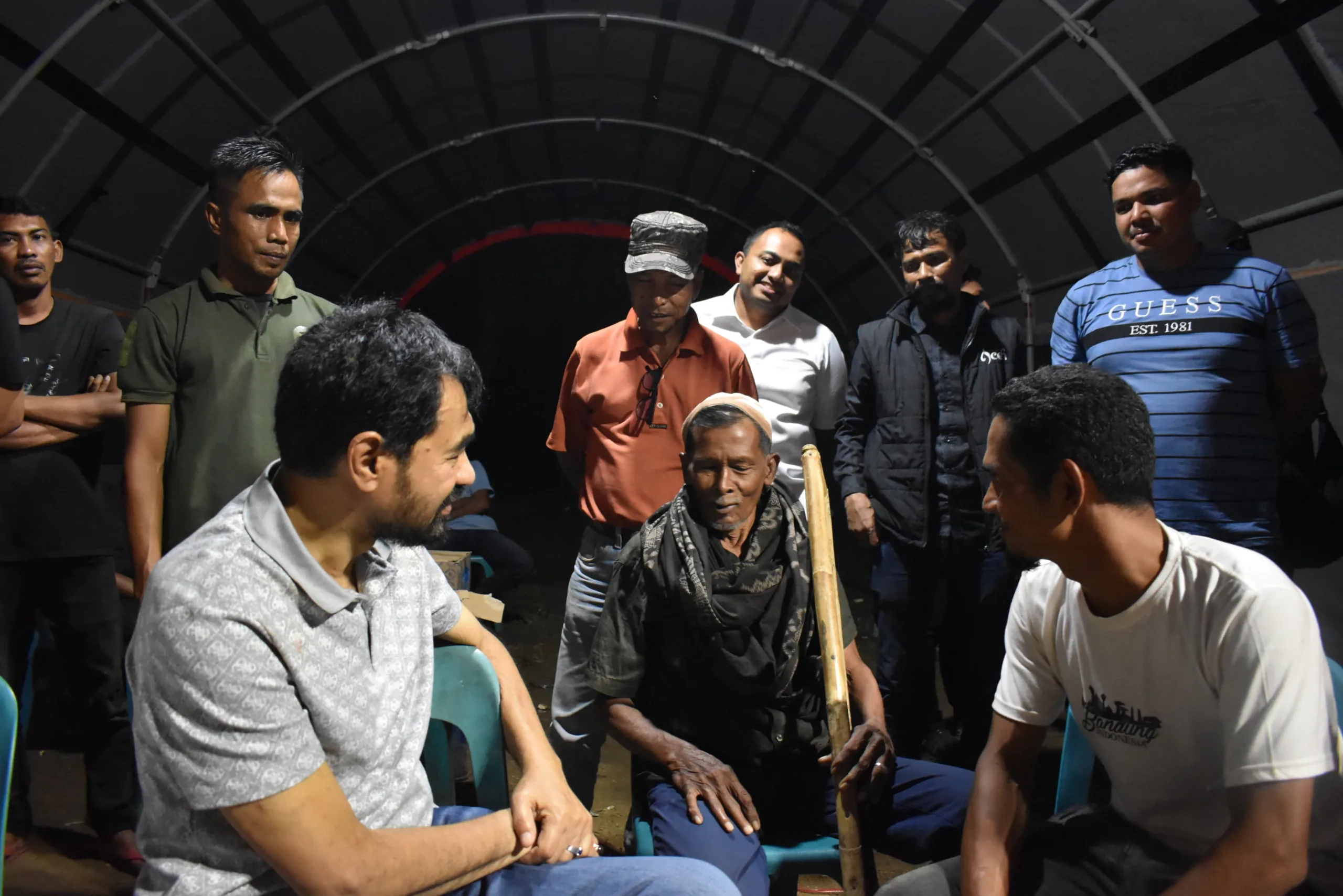 Gubernur Mualem dalam kunjungan itu didampingi anggota Dewan Perwakilan Rakyat Aceh (DPRA) Salmawati, Wakil Bupati Aceh Utara Tarmizi, termasuk Kepala Biro Administrasi Pimpinan Setda Aceh Akkar Arafat. Rombongan meninjau tenda-tenda pengungsian, dapur umum, serta fasilitas darurat yang digunakan warga selama masa evakuasi.