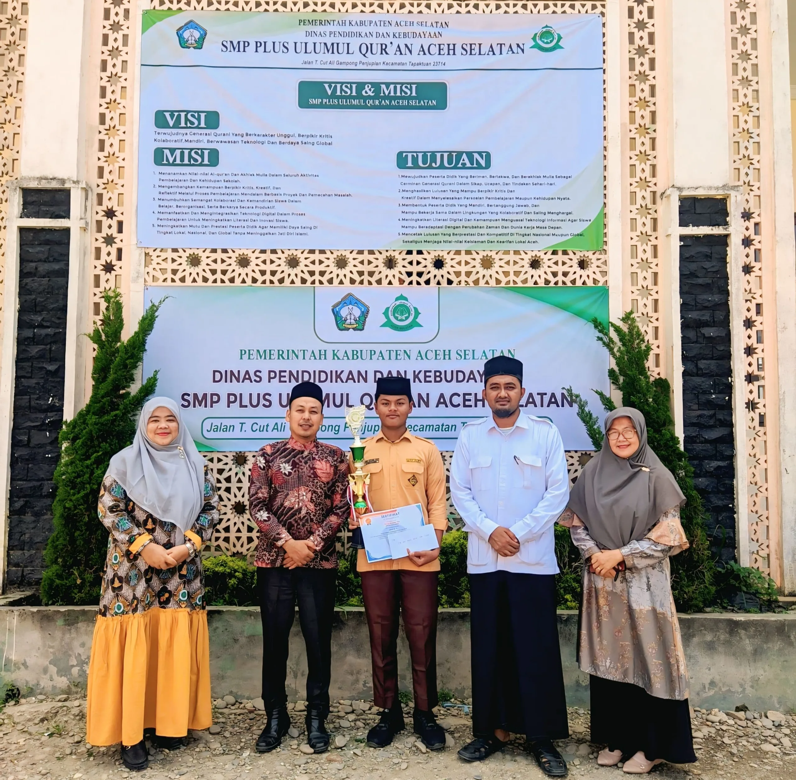 Aceh Selatan – Madrasah Ulumul Qur’an (MUQ) Aceh Selatan kembali menorehkan prestasi gemilang di tingkat kabupaten. Salah satu siswanya, Fairuz Azzamul Haq Bin Firdaus yang saat ini duduk di kelas IX (3) SMP Plus MUQ Aceh Selatan, berhasil meraih Juara 1 Uji Kompetensi Siswa Mata Pelajaran Ilmu Pengetahuan Alam (IPA) jenjang SMP tingkat Kabupaten Aceh Selatan tahun 2025.