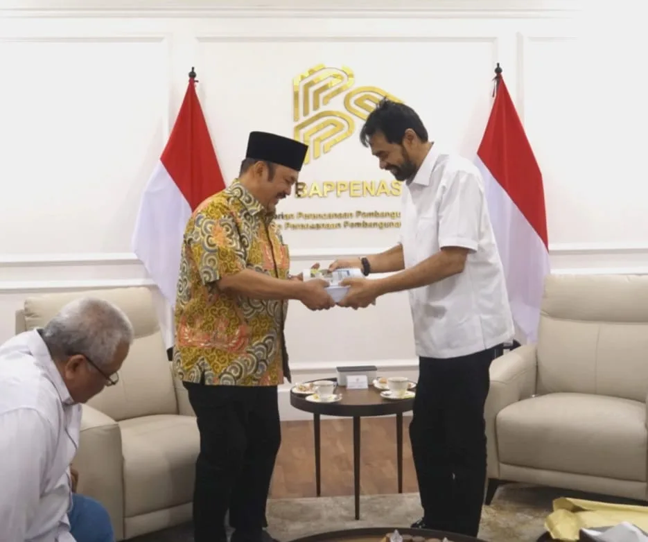 JAKARTA – Gubernur Aceh Muzakir Manaf melakukan pertemuan dengan Menteri Perencanaan Pembangunan Nasional/Kepala Badan Perencanaan Pembangunan Nasional (PPN/Kepala Bappenas) Prof. Dr. Ir. Rachmat Pambudy, M.S., di Kementerian Bappenas, Jakarta Pusat, Jumat, 12 September 2025.