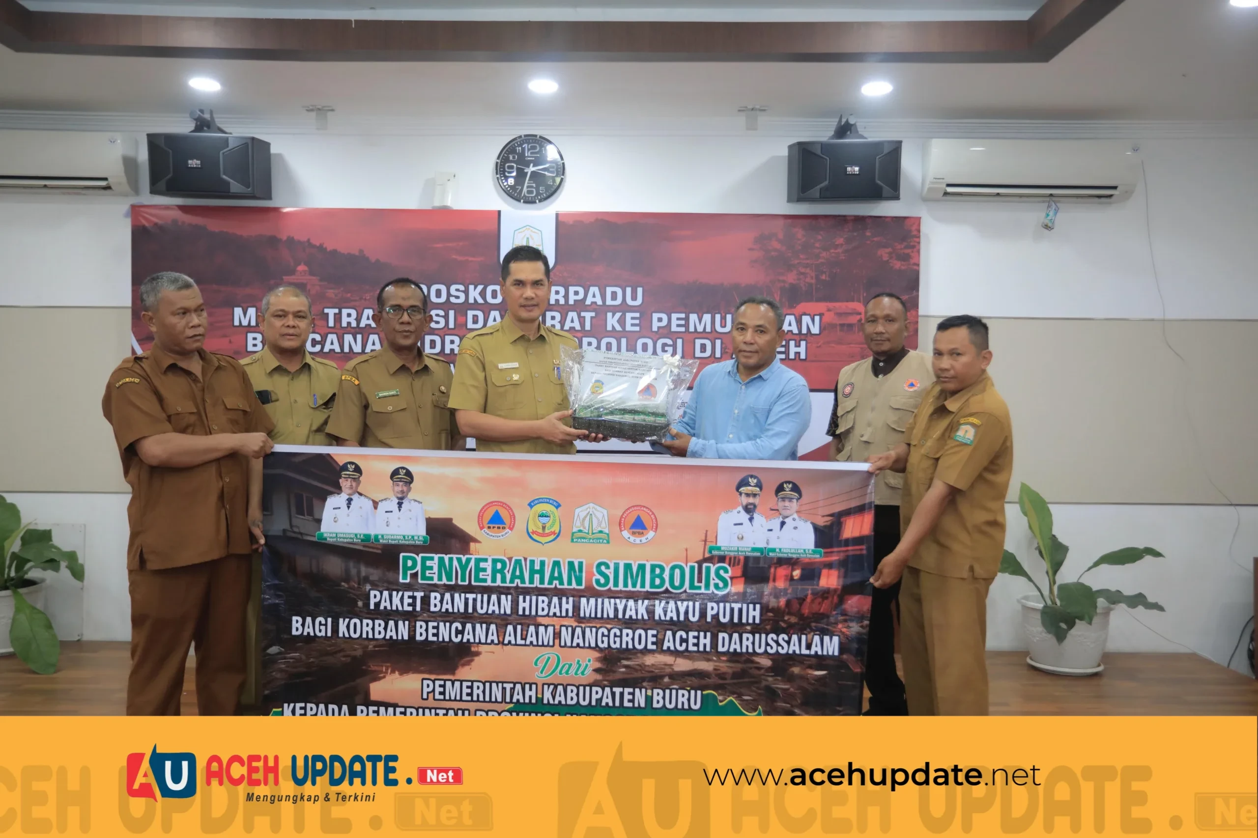 Bantuan minyak kayu putih berukuran 100ml tersebut diserahkan secara simbolis oleh Kepala Pelaksana (Kalak) BPBD Kabupaten Pulau Buru, M. TH. Al Affandy, dan diterima langsung oleh Sekretaris Daerah (Sekda) Aceh, M. Nasir, di Posko Komando Pemulihan Bencana Pemerintah Aceh pada Selasa (21/4/2026).