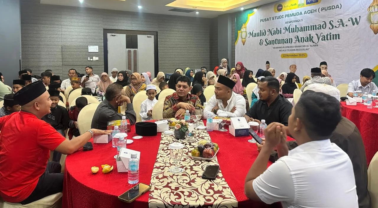 Banda Aceh – Suasana penuh haru dan kebahagiaan mewarnai peringatan Maulid Nabi Muhammad SAW yang digelar Pusat Studi Pemuda Aceh (PUSDA) di Hotel Kyriad Banda Aceh, Sabtu (22/11).
