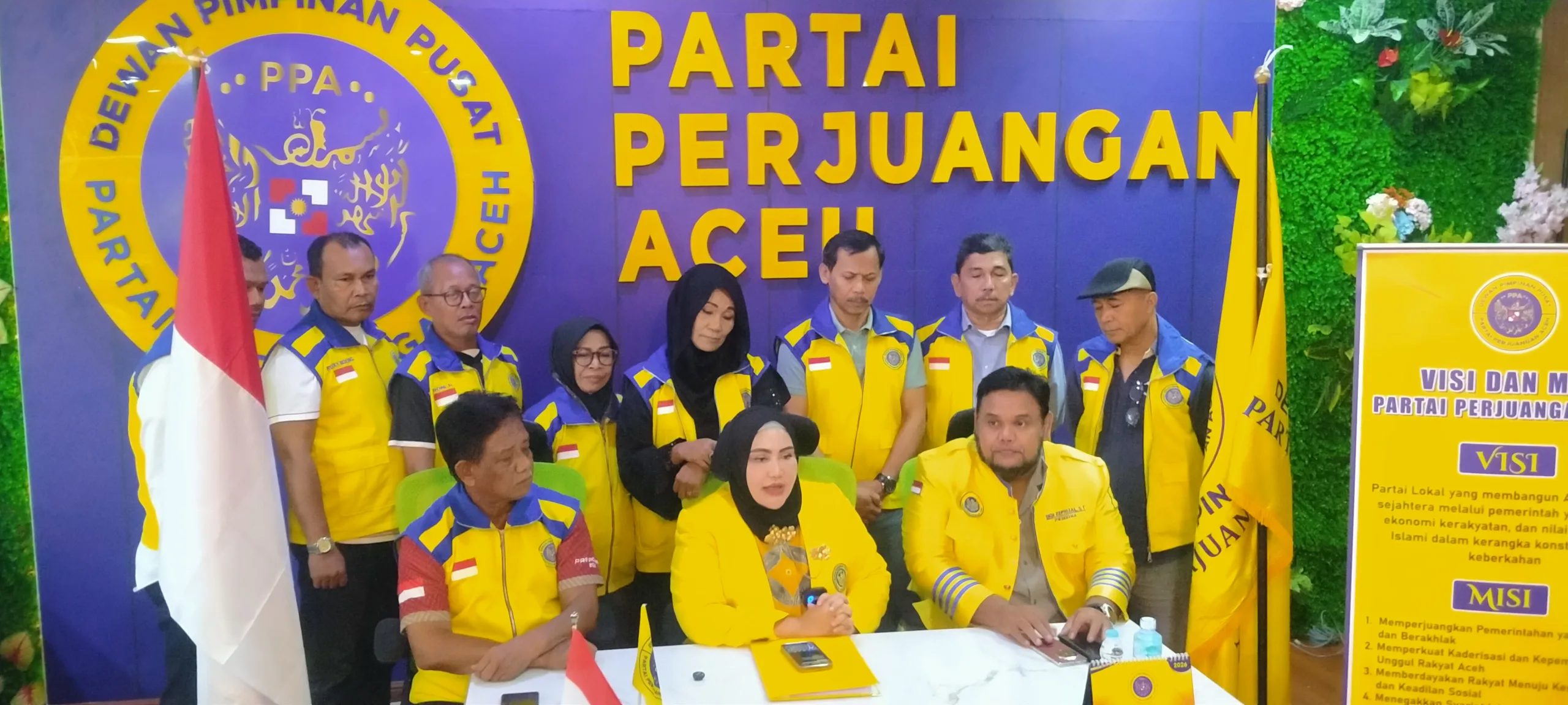 Ketua Umum PPA, Prof. Adjunct Dr. Marniati, didampingi Ketua Pembina Dedi Safrizal, ST dan anggota Partai dalam konferensi pers di kantor PPA 6 Januari 2026. Foto for acehupdate.net