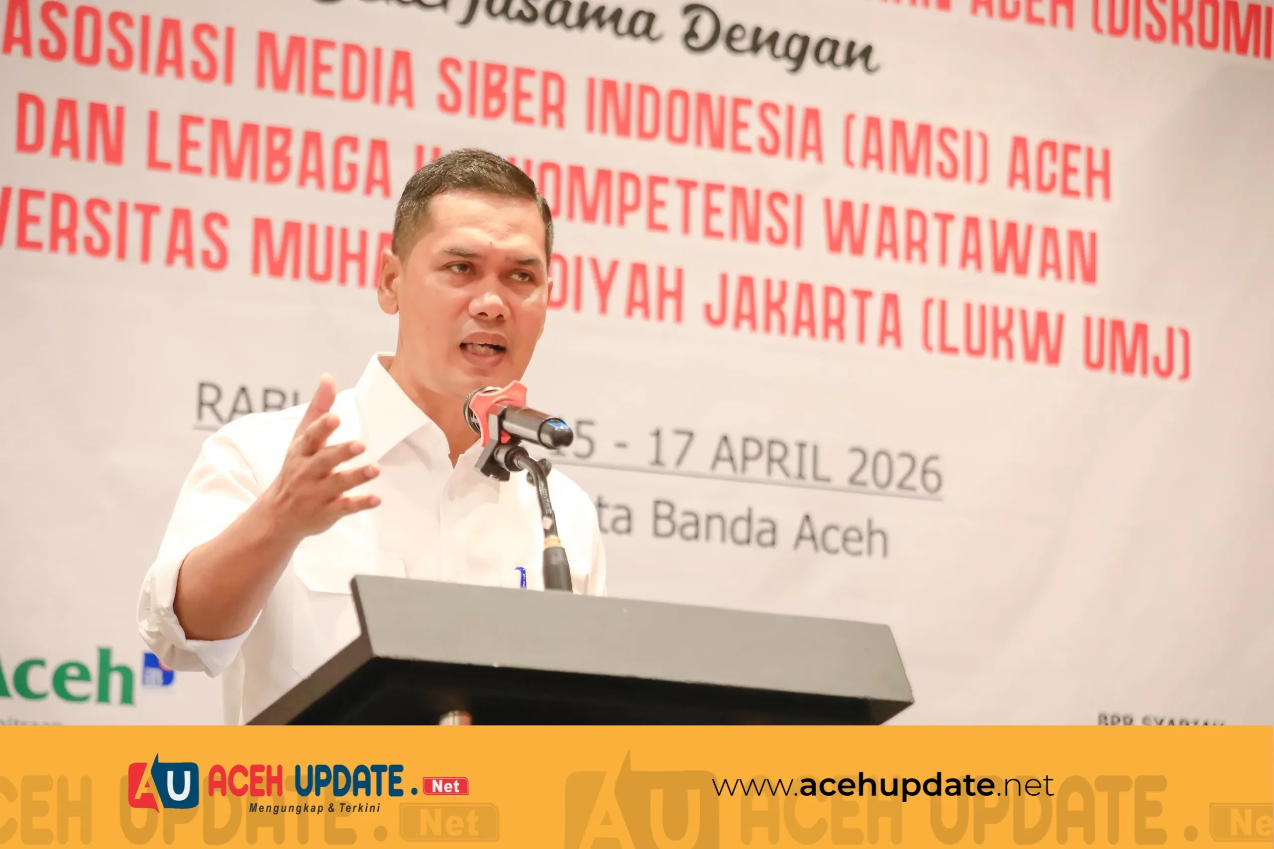 BANDA ACEH — Sekretaris Daerah Aceh secara resmi membuka kegiatan Uji Kompetensi Wartawan (UKW) dan Seminar Nasional Asosiasi Media Siber Indonesia (AMSI) Aceh Tahun 2026 yang digelar di Hotel Ayani, Banda Aceh, Rabu (15/4/2026).