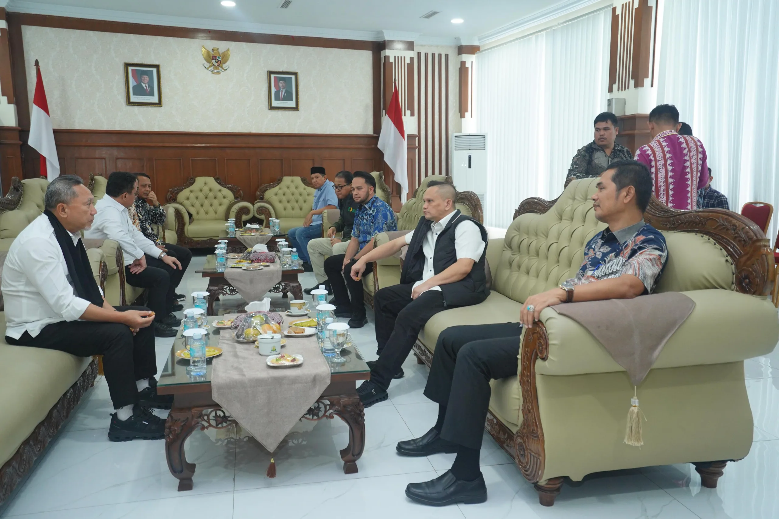Aceh Besar — Sekretaris Daerah (Sekda) Aceh, M. Nasir, menyambut kedatangan Menteri Koordinator Bidang Pangan RI Zulkifli Hasan bersama Menteri Perdagangan RI Budi Santoso dan Menteri Kelautan dan Perikanan RI Sakti Wahyu Trenggono di Bandara Internasional Sultan Iskandar Muda (SIM), Aceh Besar, Kamis (8/1/2026).