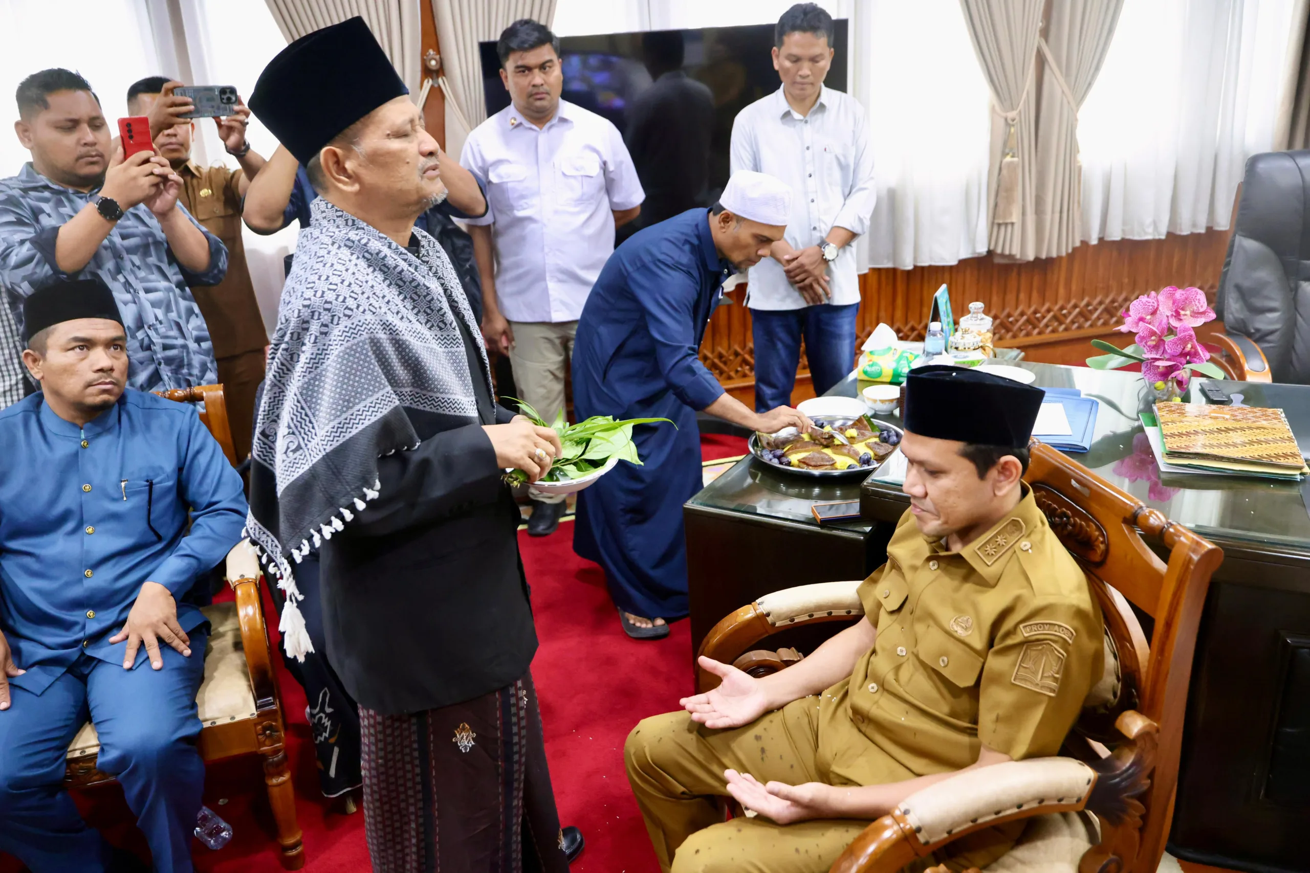 BANDA ACEH – Ruang Rapat Wakil Gubernur Aceh sedikit berbeda hari ini. Sejumlah ulama Aceh berkumpul. Do’a-do’a dipanjatkan dalam suasana khidmad oleh para Ulama dan para Tokoh Politik. Prosesi adat pun menutup acara pelepasan keberangkatan Wakil Gubernur Aceh Fadhlullah, ke Tanah Suci Mekah, Selasa (27/5/2025).