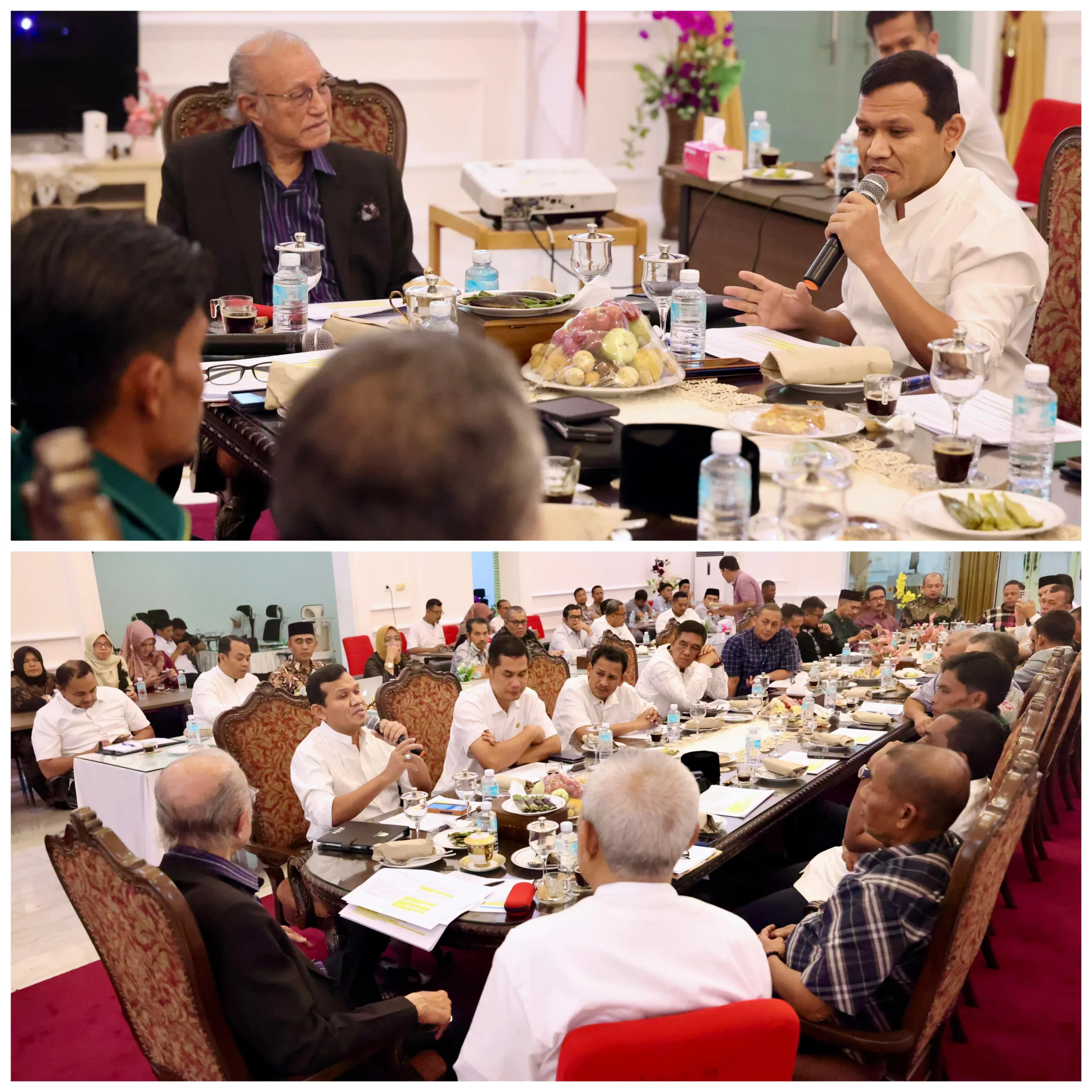 Hal tersebut disampaikan oleh Wakil Gubernur Aceh Fadhlullah, saat menggelar Rapat Koordinasi dengan Paduka Yang Mulia Wali Nanggroe Malik Mahmud Al-Haytar, Ketua DPR Aceh Zulfadli serta sejumlah pemangku kepentingan lainnya, di ruang rapat Meuligoe Wali Nanggroe, Jum’at (9/5/2025) malam.