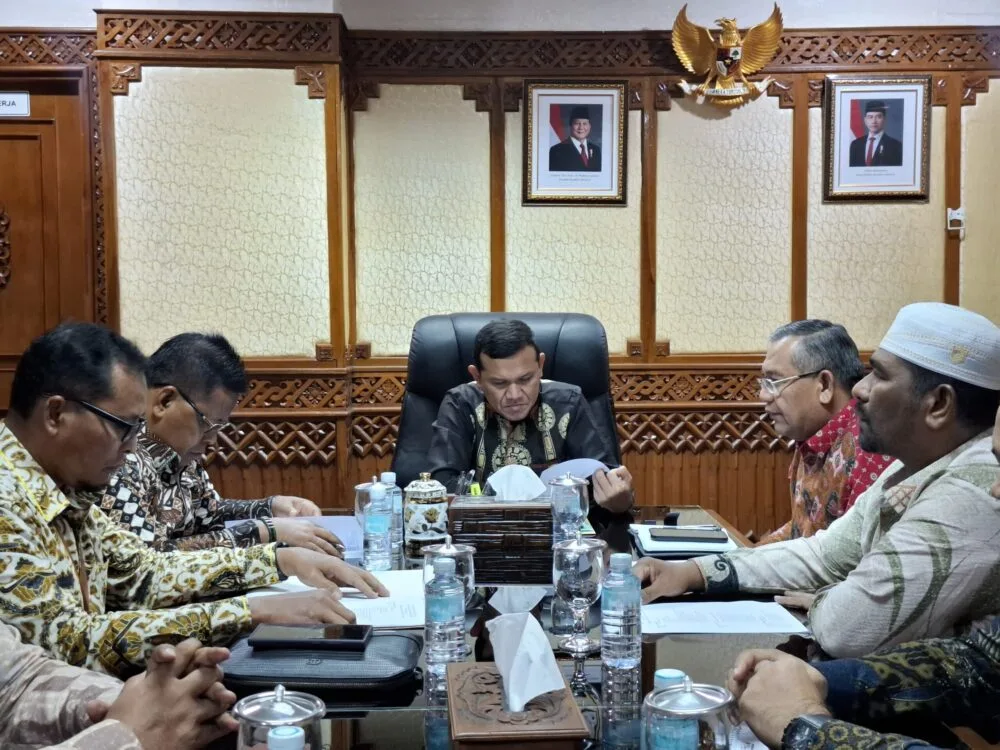BANDA ACEH — Wakil Gubernur Aceh, Fadhlullah, menerima silaturahmi tim formatur Masyarakat Ekonomi Syariah (MES) Aceh, di ruang kerjanya di Kantor Gubernur Aceh, Kamis (24/4/2025).